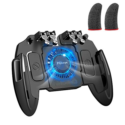 荒野行動 pubg mobile codモバイル 使命召唤 iphone コントローラー 冷却ゲーム6本指操作可能 冷却ファン付き 高感度 射撃ボタンスマホ ios andriod 各種ゲーム対応 USB充電(指サック2個入り)