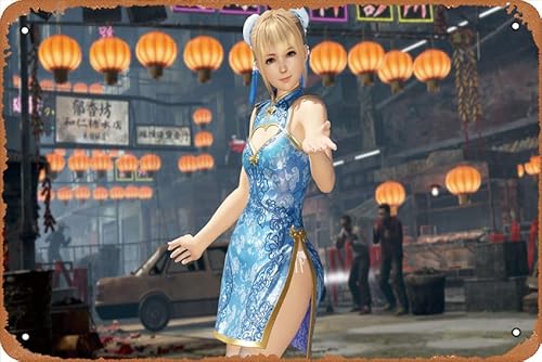 ビデオゲーム、マリーローズ(デッドオアアライブ)、デッドオアアライブ6メタルティンサインホームデコレーションバーカフェクラブ壁装飾ヴィンテージレトロサイン8×12インチ